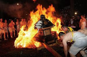 ● Rampage with throwing of the portable shrines into fire and water.